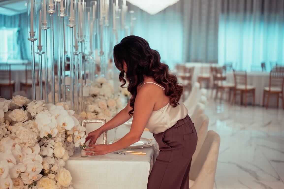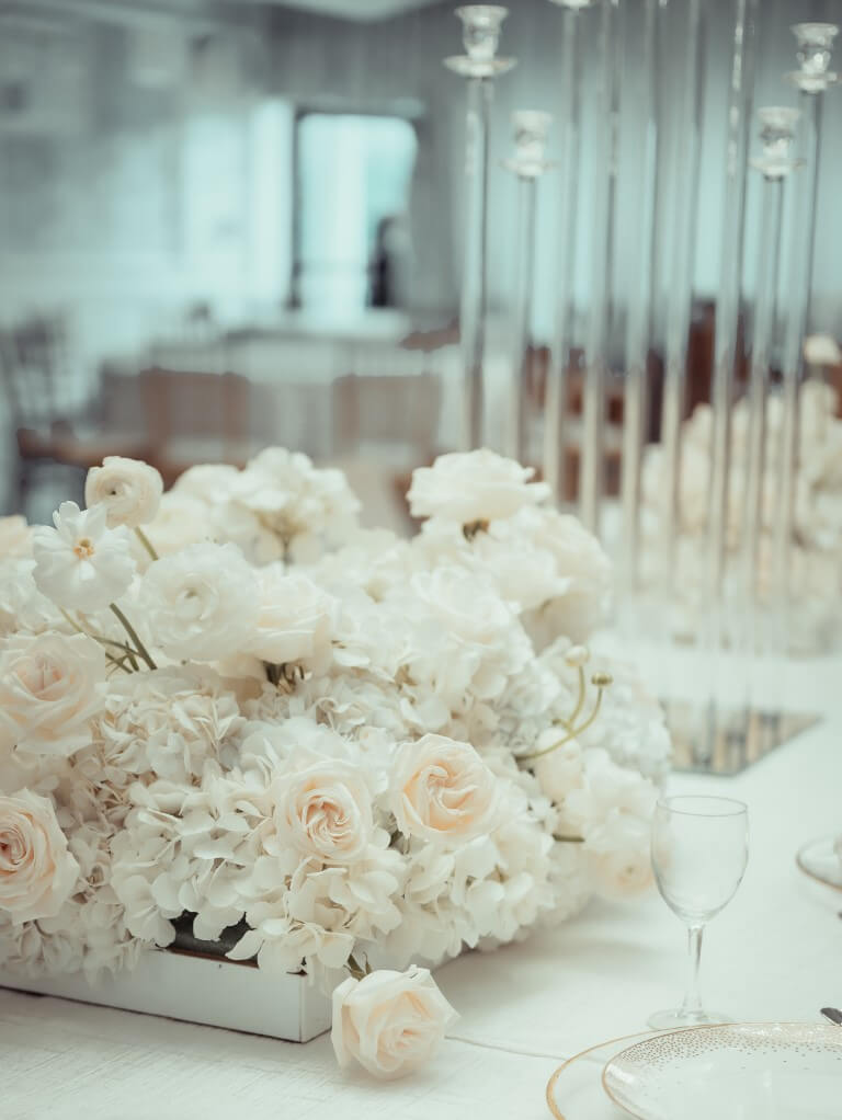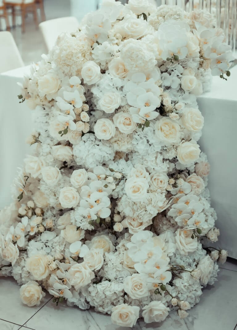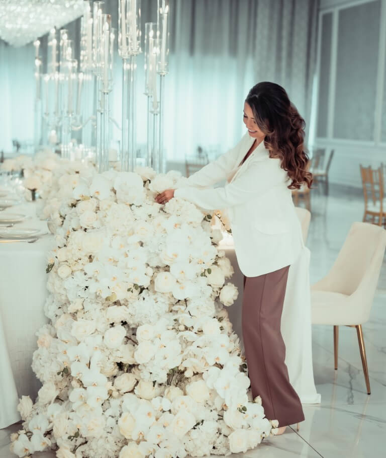 Yes, absolutely. On the day of your wedding, our team will arrive early to handle every aspect of floral setup. We’ll make sure bouquets, boutonnieres, centerpieces, altar arrangements, and any other floral installations are placed perfectly before your guests arrive. Our goal is to ensure that everything looks flawless and is ready well ahead of time, so you don’t have to worry about a thing. We’ll coordinate with the venue staff if needed, and you can rest assured that the floral décor will be arranged exactly as planned.