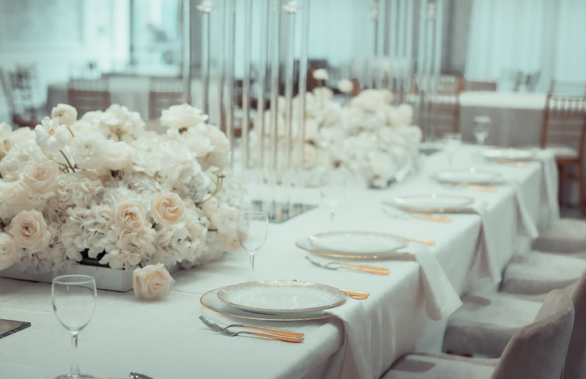 We offer wedding table centerpieces, floral runners, toppers or accents for your cake, bar, or welcome tables.